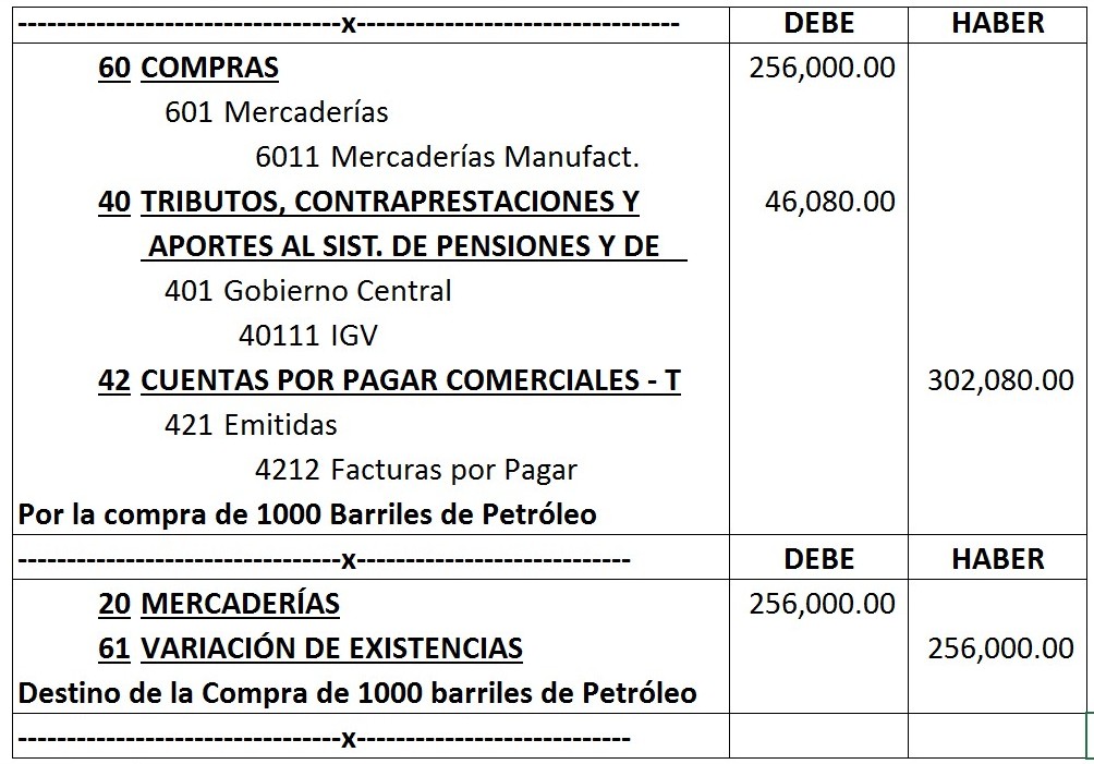 Registros contables asociados a la cuenta 601: