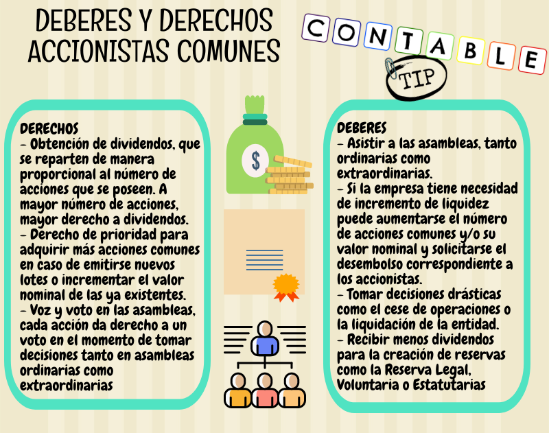 - Acciones comunes: Son las acciones ordinarias que representan la propiedad y el derecho a voto en la empresa. Los accionistas comunes comparten los beneficios y riesgos de la empresa.